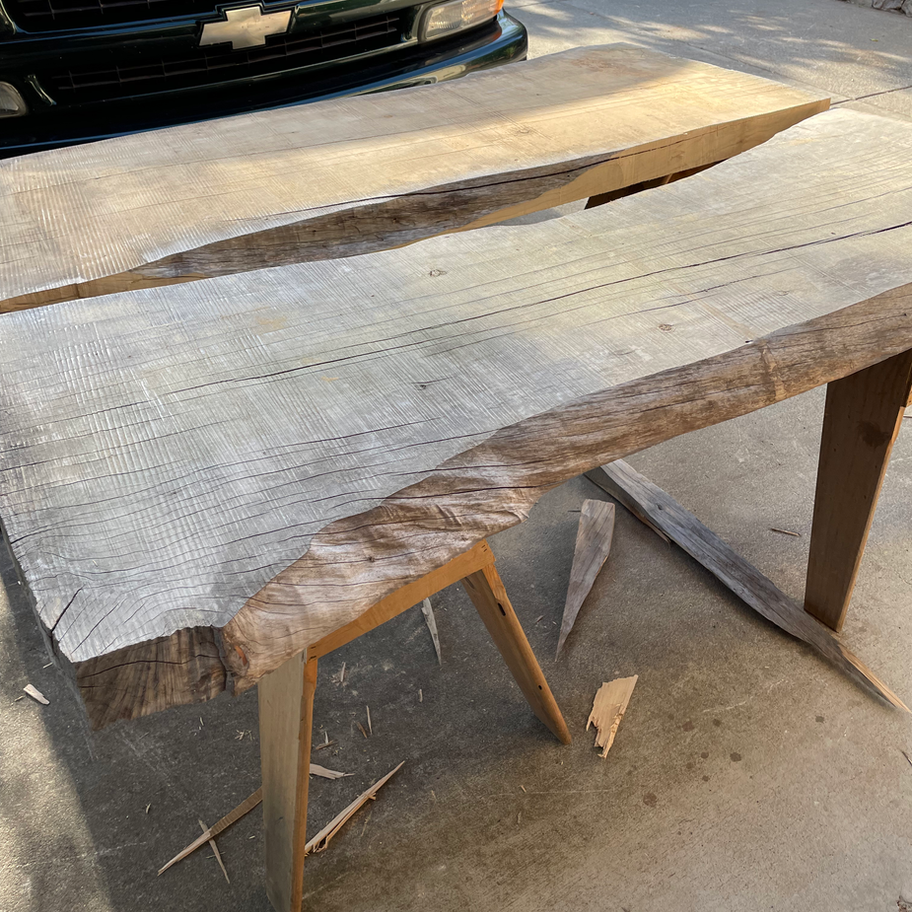 Measuring 6’ x 4’ and standing 30” tall, the table travels in two parts, but its scale and heft demand skilled handling. More than a breakfast table, it is a testament to survival, history, and artistry—transforming reclaimed, fire-marked wood into a lasting heirloom.